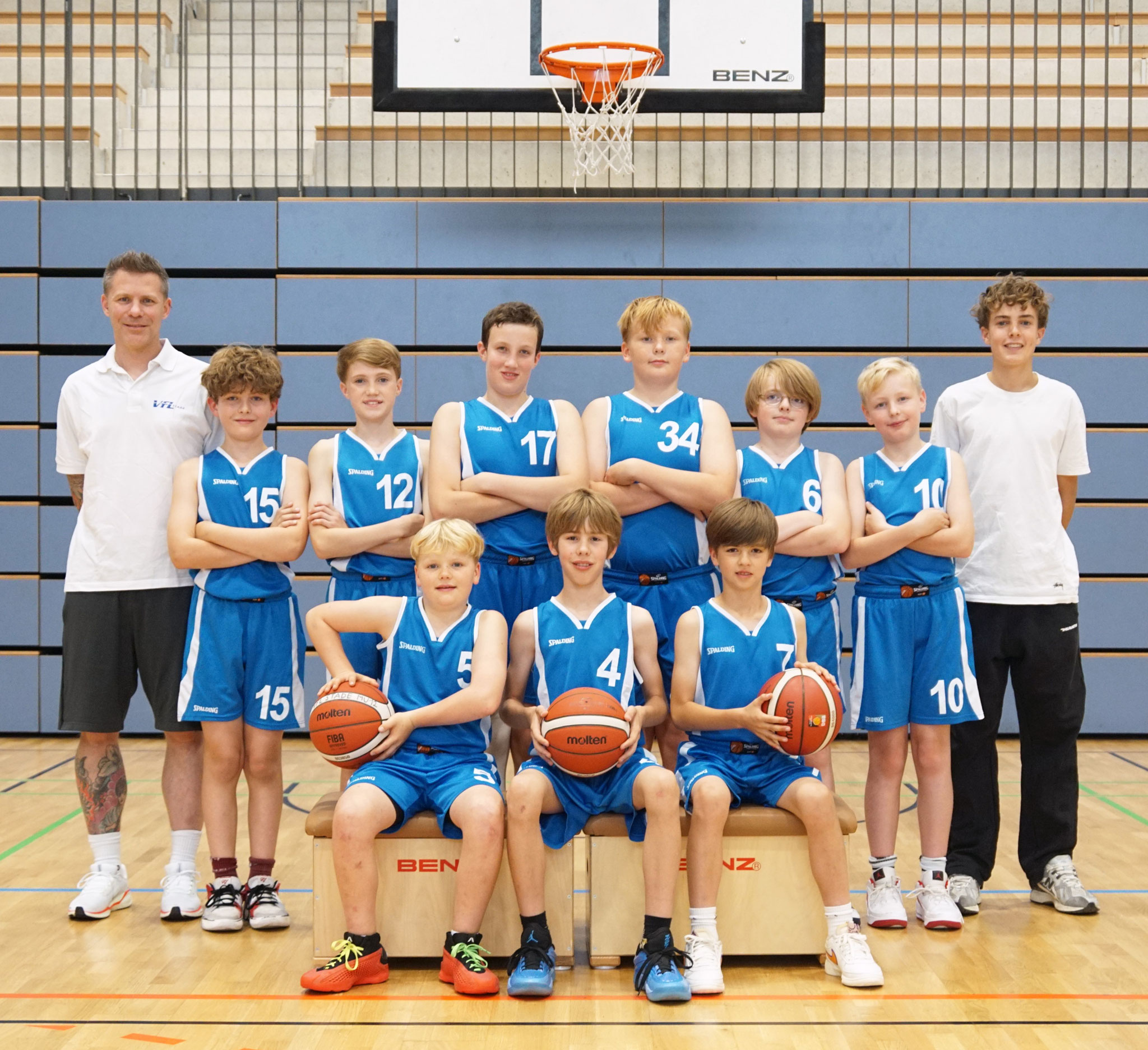 Die mU12 II startet dieses Jahr mit einem ganz neuen Kader im Vergleich zu letzem Jahr. Mit vielen neuen Spielern, die den Spaß am Basketball gerade erst gefunden haben und einigen Spielern, die letzte Saison schon dabei waren, freuen sich die Coaches Jonte Schraplau und Bjarne Elshoff auf die Weiterentwicklung ihres Teams. Wichtig ist ihnen, dass dabei stets der Spaß am Sport im Vordergrund steht. Den Spielen blickt das Team zuversichtlich entgegen und freut sich auf eine rege Beteiligung an den Trainingseinheiten, die zwei Mal pro Woche stattfinden.